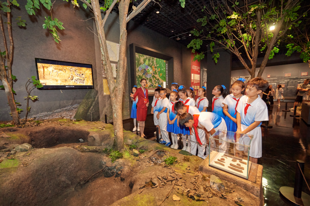 北京市小学生参观“红石砬子遗址抗联密营”部分。